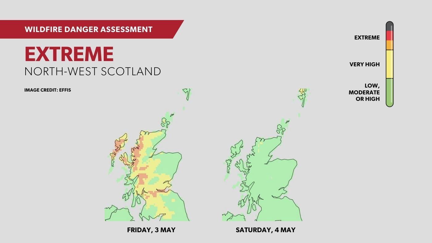 The latest wildfire warning has been issued and identifies an extreme risk across north-west Scotland.